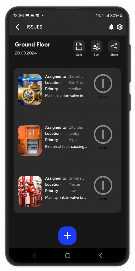 Share lists of issues or tasks with other users and update the status in real time with options like Open, In Progress, Rejected, Complete, and Can't Do.